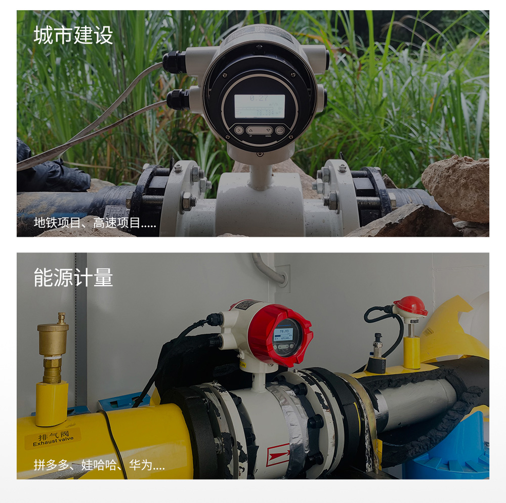 電磁流量計工作原理基于法拉第電磁感應定律。圖 2 中上下兩端的兩個電磁線圈產生恒定或交變磁場,當導電介質流過電磁流量計時,流量計管壁上的左右兩個電極間可檢測到感應電動勢,這個感應電動勢大小與導電介質流速、磁場的磁感應強度、導體寬度(流量計測量管內徑)成正比,再通過運算就可以得到介質流量。CN1
