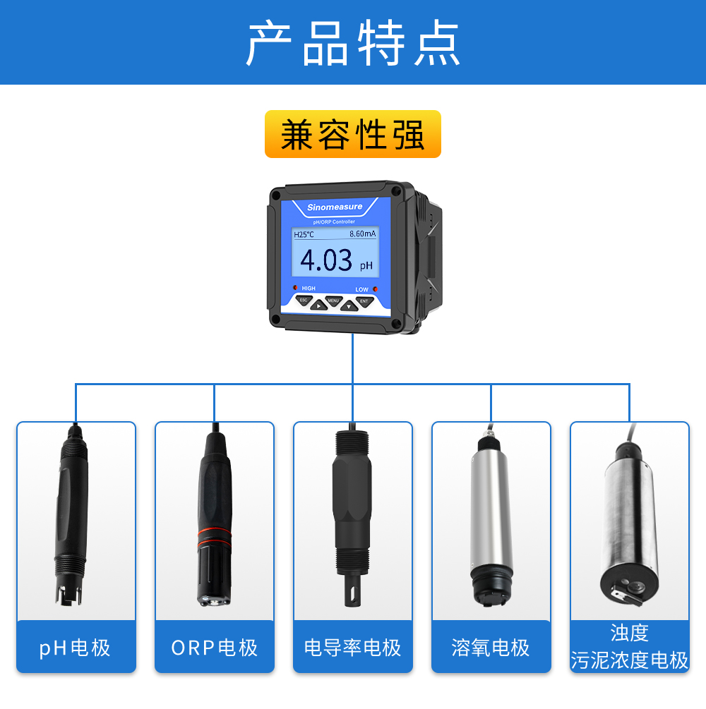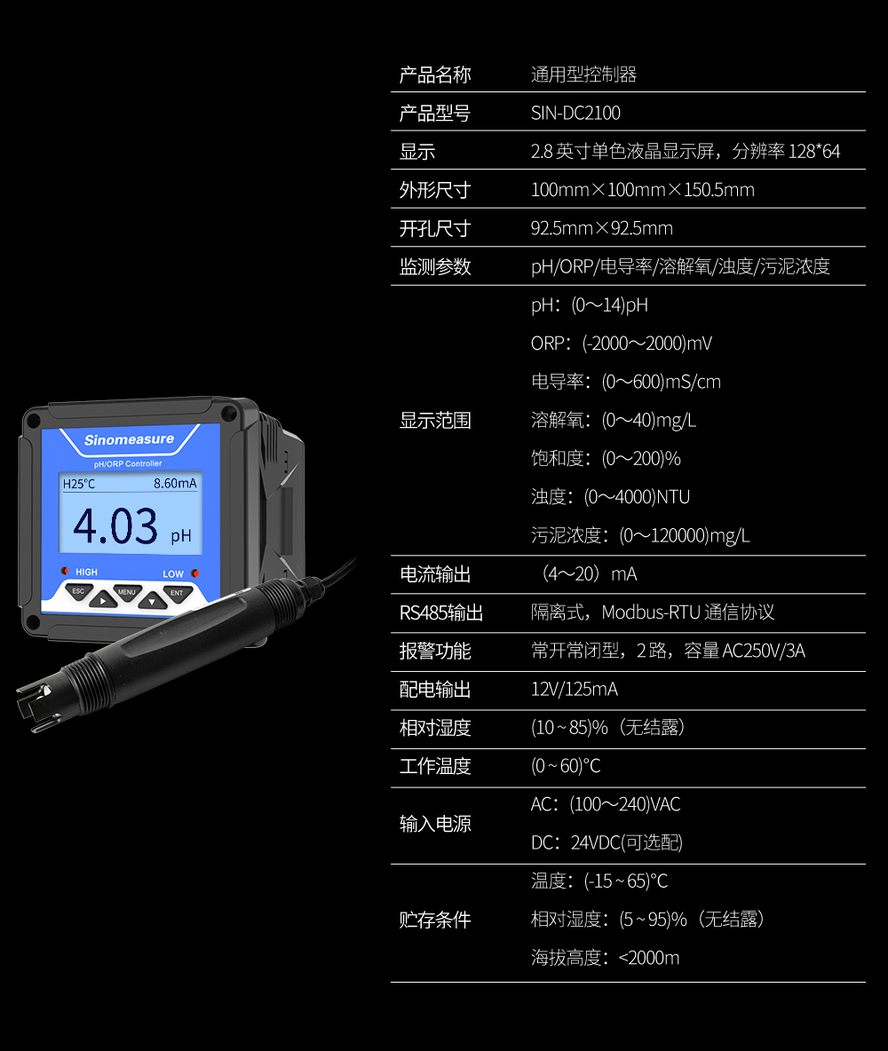本產品為水質通用型控制器,適用于與本公司多種水質系列數字傳 感器配套使用,用于監測包括 pH、ORP、電導率、溶解氧、濁度、污泥 濃度等水質參數,監測的參數通過 RS485 或電流變送輸出到監控室進行 記錄保存。CN1