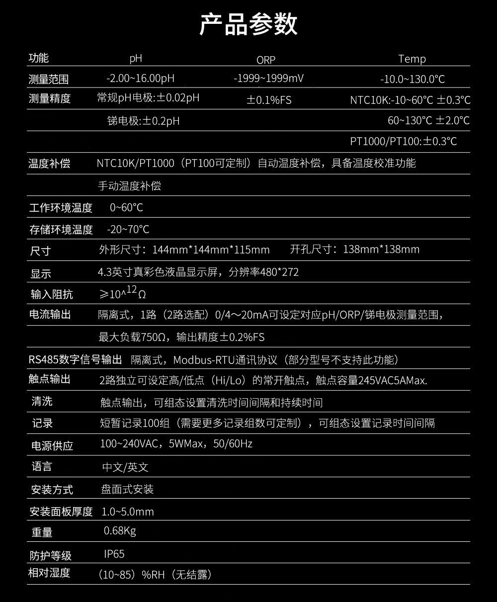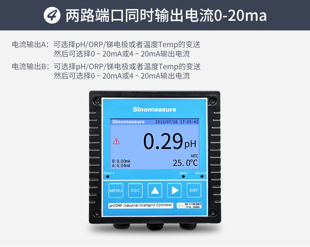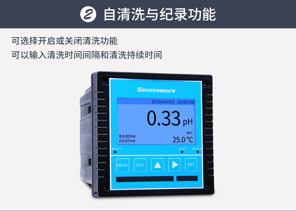 • 聯測_SIN-pH/ORP8.0大屏4.3英寸在線pH計_帶記錄_帶清洗_
