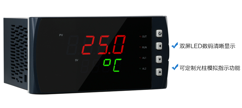 SIN-2200雙回路數字顯示控制儀采用了表面貼裝工藝,全自動貼片機生產,具有很強的抗干擾能力。本儀表支持多種信號類型輸入,可與各類傳感器、變送器配套使用,實現對溫度、壓力、液位、速度、力等物理的測量顯示,帶報警控制、模擬變送輸出、485/232 通訊等輸出功能,帶雙屏數碼管顯示,可自由設定上、下窗口顯示內容,可訂制數學運算功能,可針對兩路測量信號進行加、減、乘、除運算,其適用范圍非常廣泛。CN2