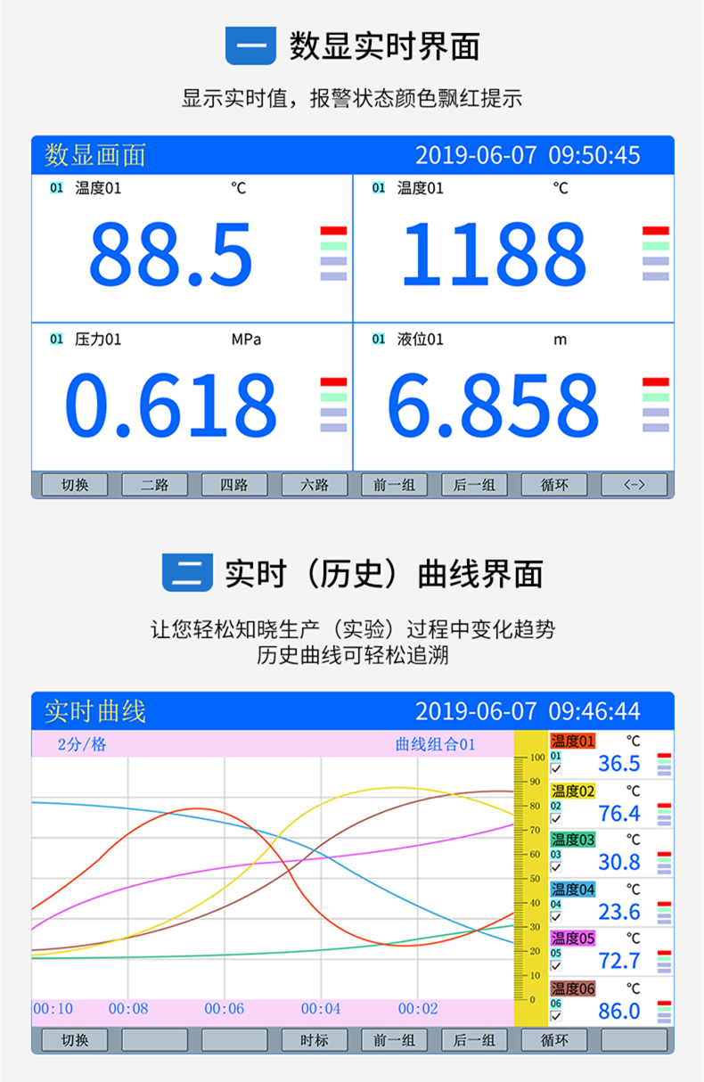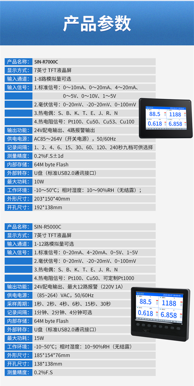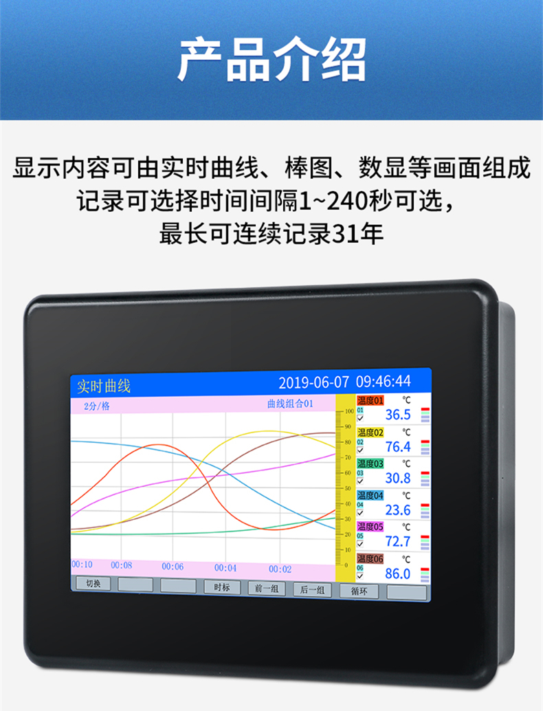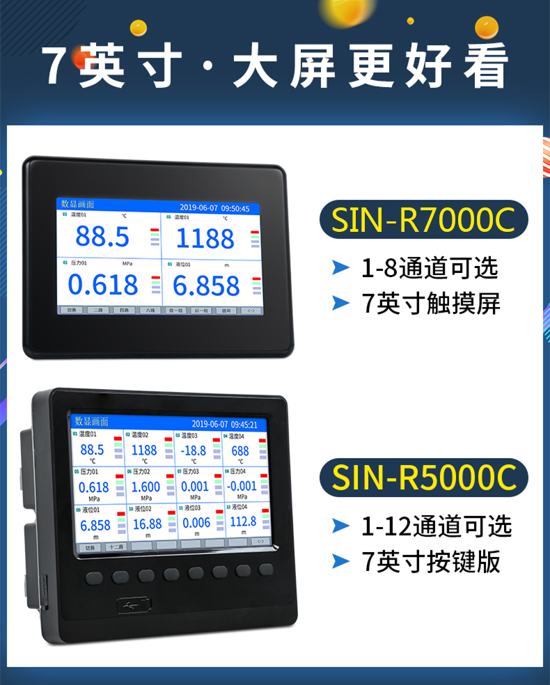 聯(lián)測_SIN-R7000C_(觸摸屏)1-8路可選_7英寸無紙記錄儀_溫度_壓力_多種參數(shù)
