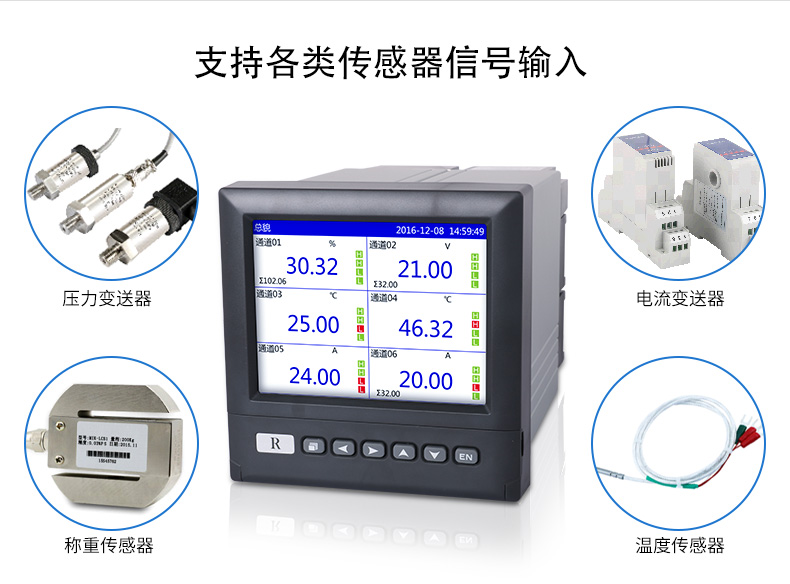 SIN-R6000D系列無紙記錄儀是一種高速高性能微處理器和5.6英寸彩色液晶顯示屏,對現(xiàn)場各種溫度、壓力、流量、電量等信號實現(xiàn)監(jiān)測、控制和記錄功能。 SIN-R6000D系列無紙記錄儀可自由組態(tài)輸入標準電流、標準電壓、熱電偶、熱電阻、頻率等信號,可實現(xiàn)為傳感器配電和繼電器報警輸出,并且可通過U盤或通訊方式與上位機進行數(shù)據(jù)交換。CN3
