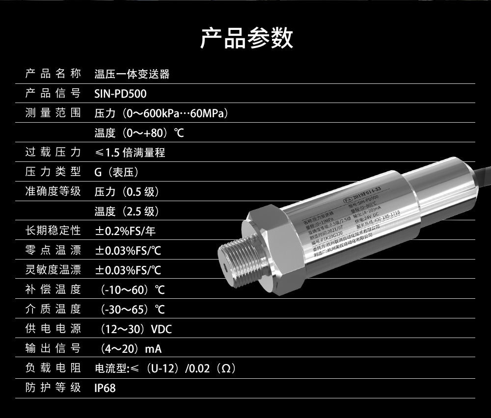 • 聯測_SIN-PD500溫壓一體變送器 水/液體/氣體油